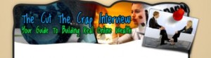 “The Cut the Crap Interview” I like it my friend and I have to agree with Nigel and Julie above the second image is better and not only looks cleaner but more professional. Nigel does have a point about adding another line under the title, with reference to the product.